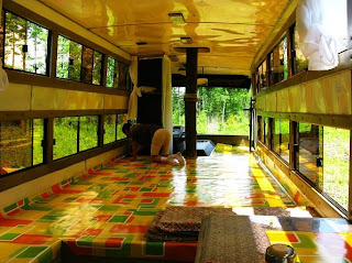 Xiao Lang and Xiao Peng sleep in the tent behind the bus.